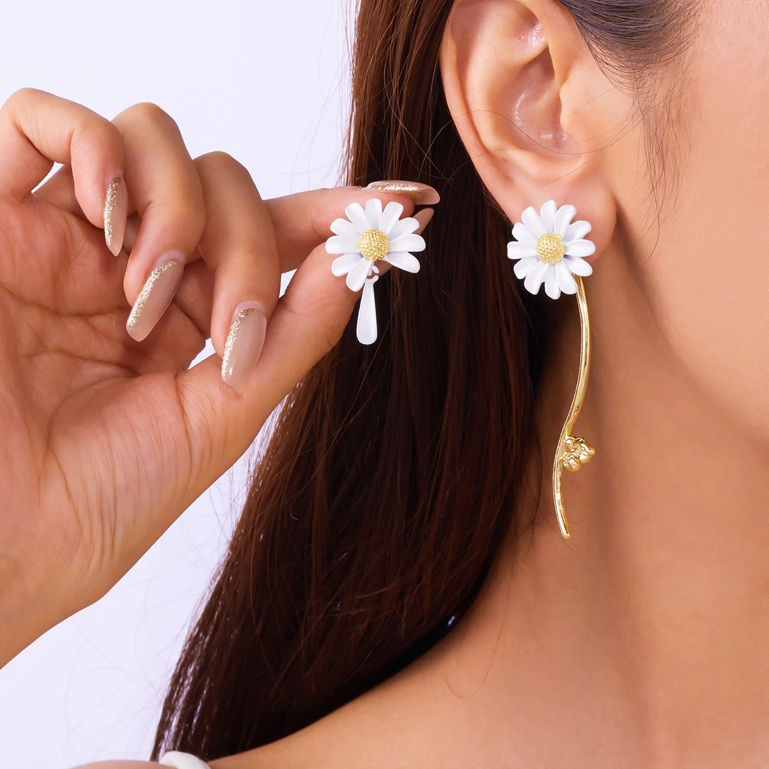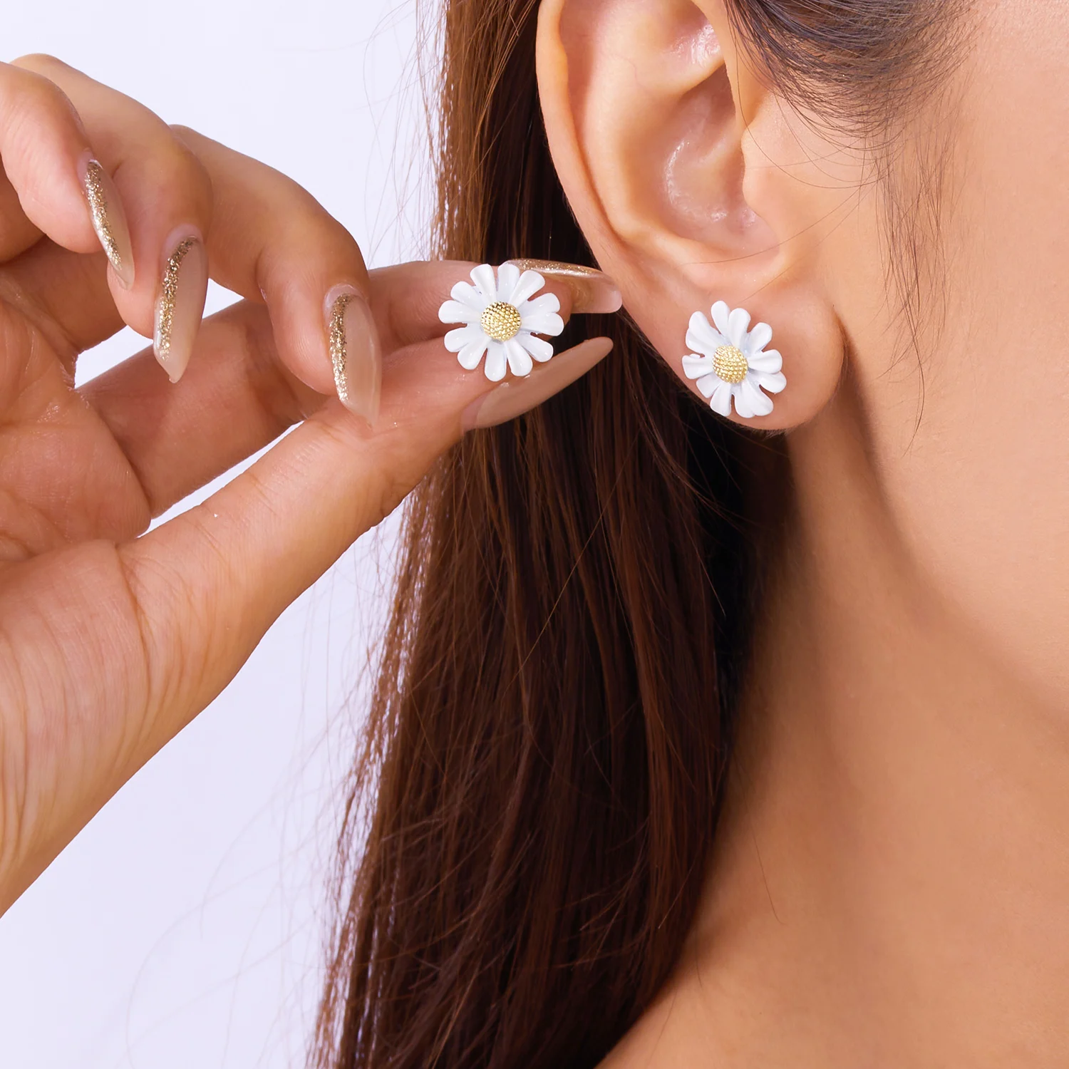 Spring New Cute Daisy Flower Stud Earrings For Women 2023 Sweet Shell Enamel Silver Plated Earrings Korean Temperament Jewelry