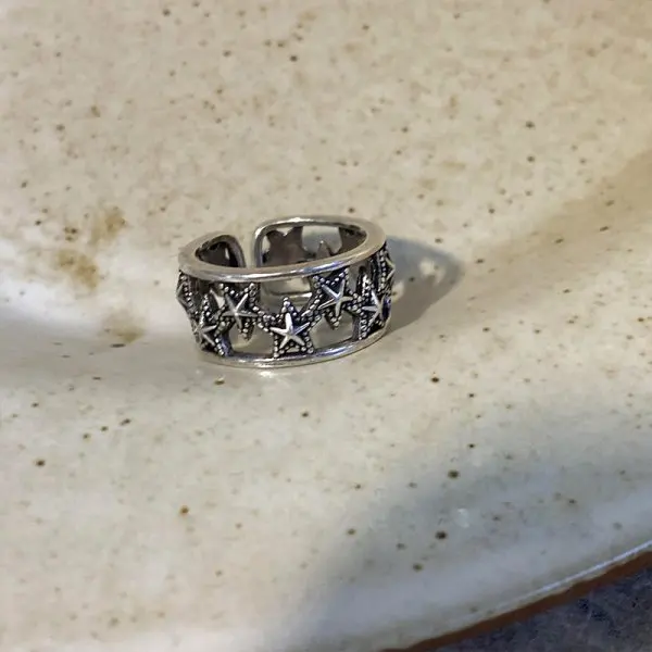 Vintage Silver Plated Irregular Rings for Men Fashion Domineering Cracked Hammered Opening Ring Adjustable Jewelry Male Gift