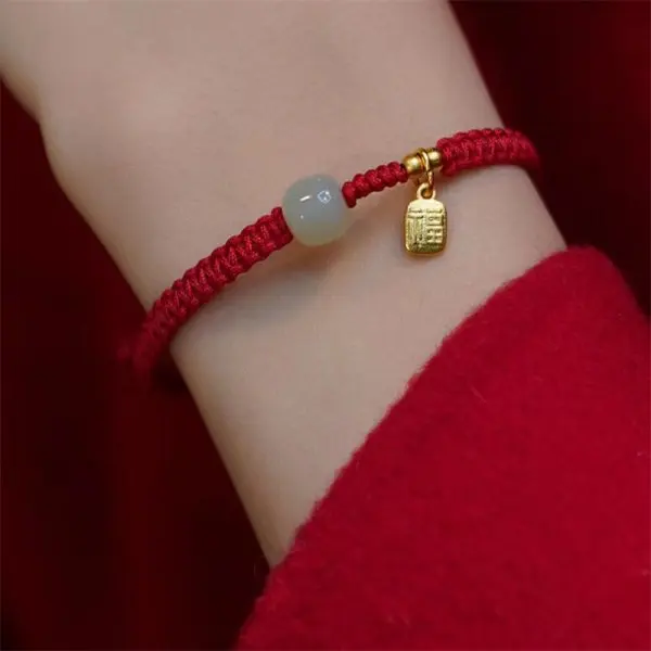 Lucky Koi Pure Red Rope Bracelet for Women Men Chinese Style Cinnabar Handmade Adjustable Braided Bracelet Amulet Jewelry Gifts